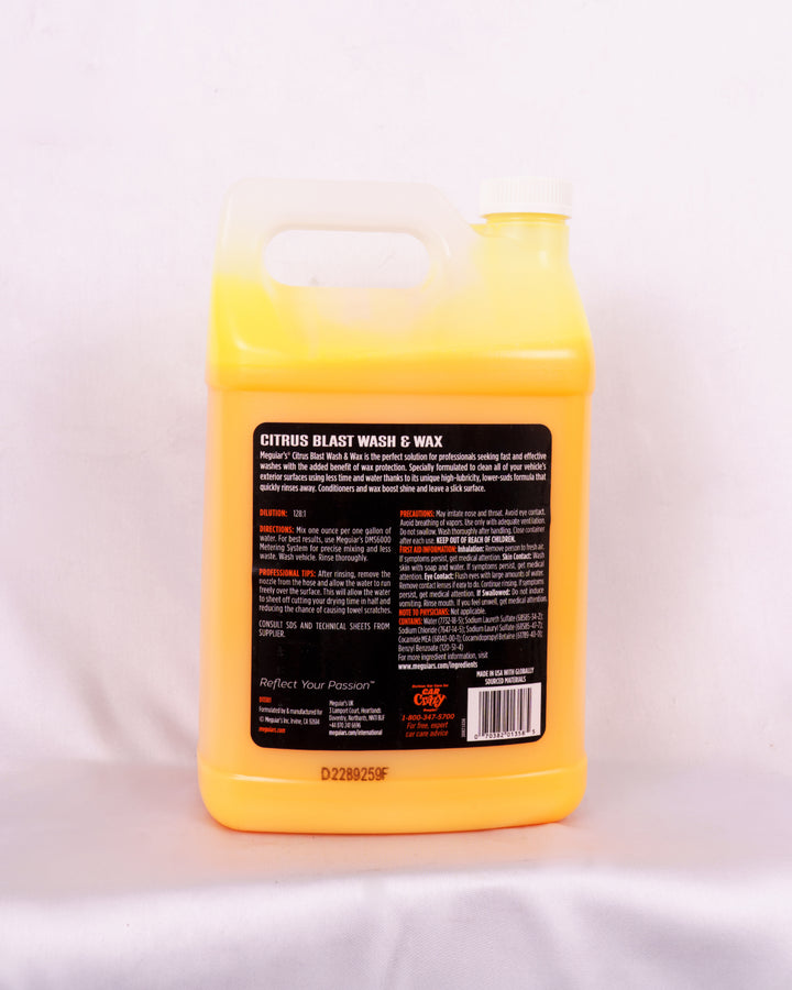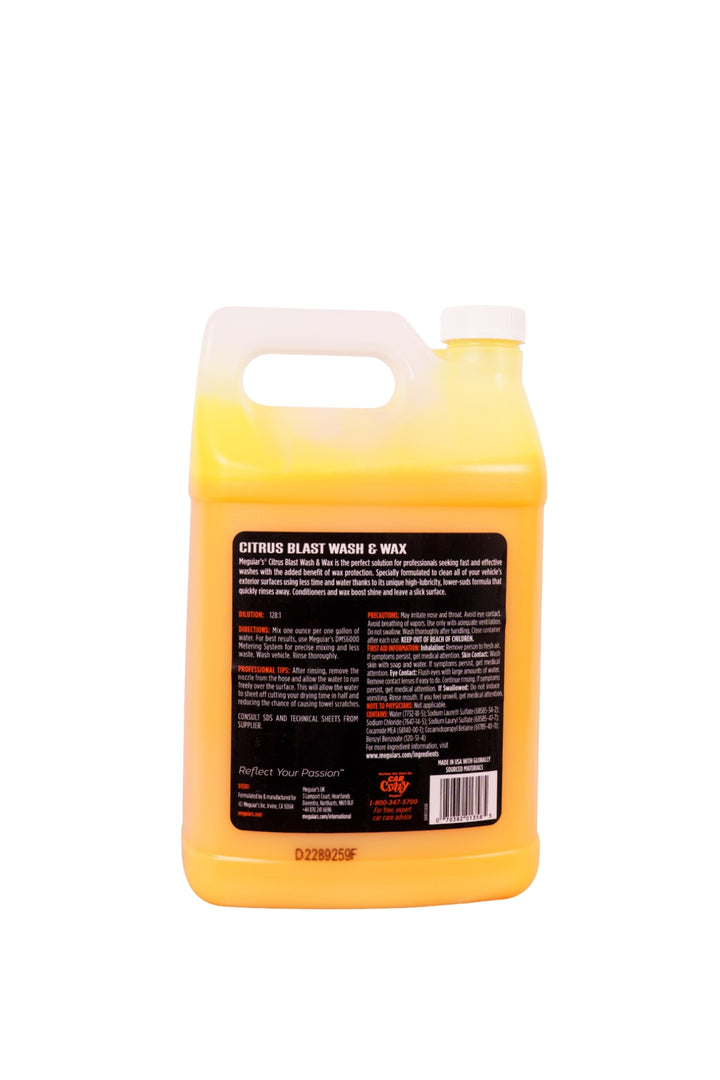 Meguiars Citrus Blast Wash & Wax is the perfect solution for professionals seeking fast and effective washes with the added benefit of wax protection. Specially formulated to clean all your vehicle's exterior surfaces using less time and water thanks to its unique high-lubricity, lower-suds formula that quickly rinses away.