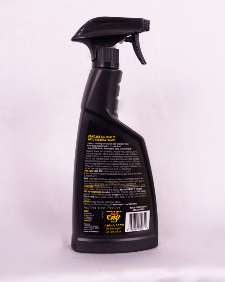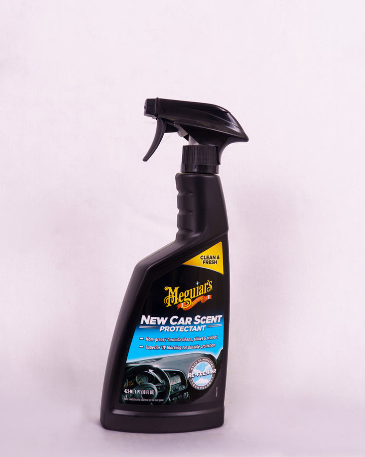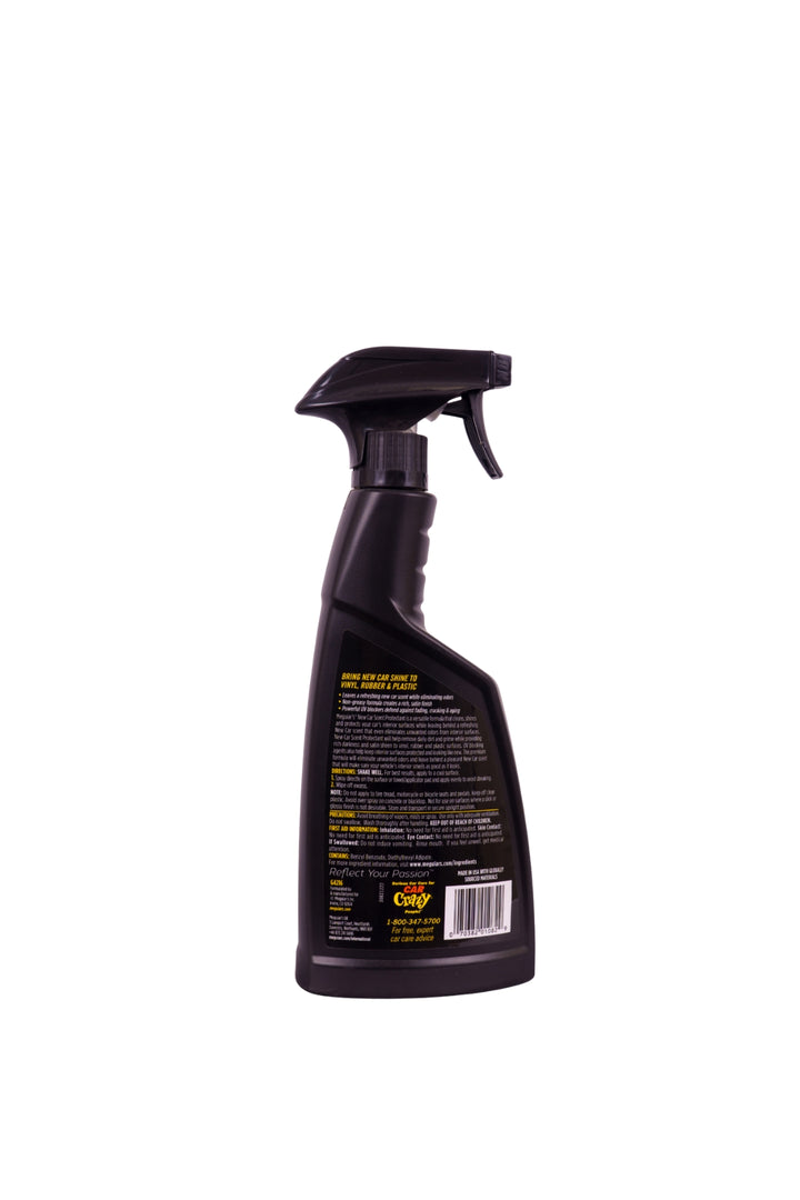 Meguiar’s ®New Car Scent Protectant provides protection and shine to all vinyl, rubber, and plastic while leaving behind a fresh, new car scent. This premium formula is non-greasy and will provide UV protection to defend against fading, cracking & aging