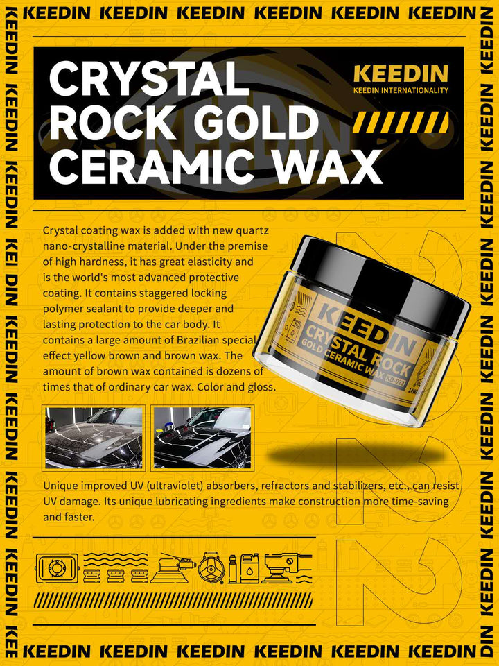 Protective Gold Ceramic Wax is made with finest combination of Quartz Nanocrystalline and Pure Brazilian Carnauba wax, it coats a car's paintwork in a smooth and glossy, yet tough and protective, water-repellent film - and even brings a shine to every colour. The unique qualities of this product allow you to wax your vehicle in higher temperature up to 55¡C or in direct sunlight and light rain.