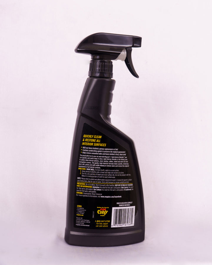 Quik Detail your paint to give your interior that "just detailed" look. In just 5 additional minutes, your entire interior will look sharp and smell fresh. Quickly and easily maintains the look and feel of interior plastics, vinyl, leather, rubber, metal and even audio/video equipment. The safe, high lubricity formula lifts off dust, ashes, dirt, grime, spills and fingerprints without build-up.