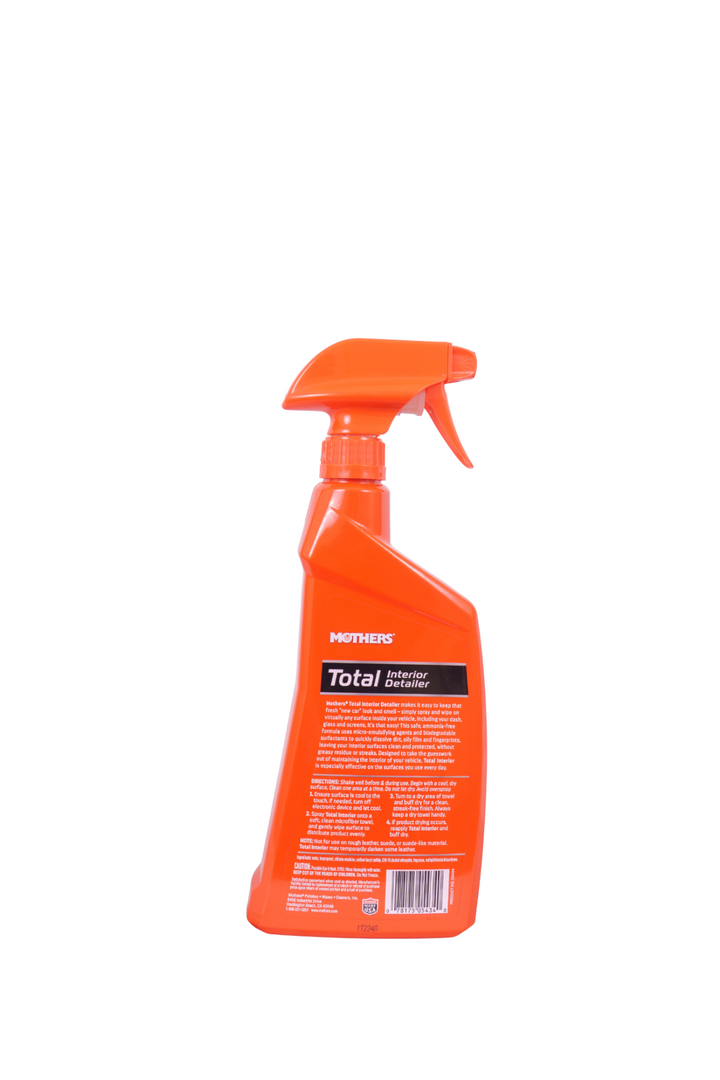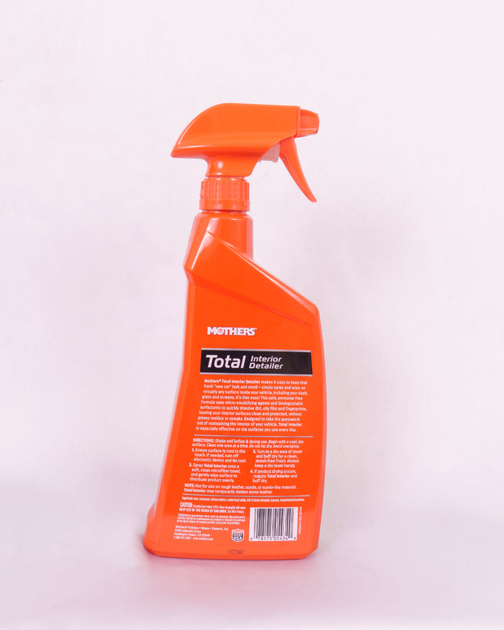 Mothers® Total Interior Detailer makes it easy to keep that fresh “new car” look and smell – simply spray and wipe on virtually any surface inside your vehicle, including your dash, glass and screens, it’s that easy! This safe, ammonia-free formula uses micro-emulsifying agents and biodegradable surfactants to quickly dissolve dirt, oily film and fingerprints, leaving your interior surfaces clean and protected, without greasy residue or streaks. Designed to take the guesswork out of maintaining the interior of your vehicle, Total Interior is especially e!ective on the surfaces you use every day